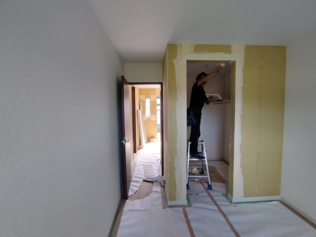 内部ではクロス貼りを行っています